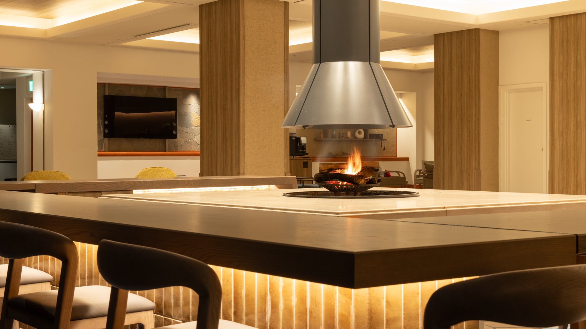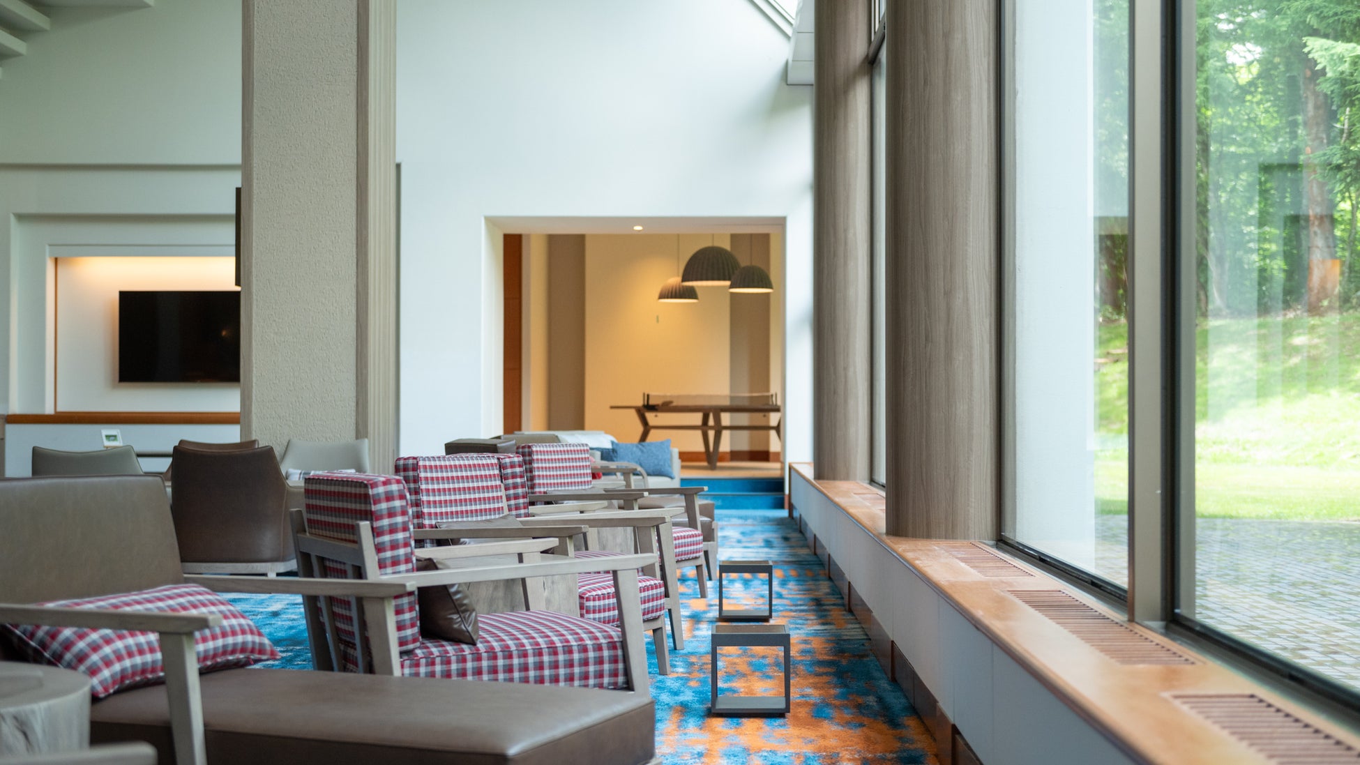 エントランスロビーエリアは全面改修。ホテルに一歩足を踏み入れると、目の前に広がる全面ガラス窓の向こうからグランデコの美しい景色が飛び込んできます。夏は青々強い雄大な緑に、冬は白銀の雪に抱かれるかのような空間に仕上げました。また、中央のシンボリックなファイヤープレイスを囲むバーカウンターを新設。暖炉の火を囲みながら、旅の一日を振り返る落ち着いたバーラウンジへと様変わりいたしました。さらに、ラウンジの一角にはカフェスペースもご用意し、ご滞在中自由にご利用いただける空間となっております。