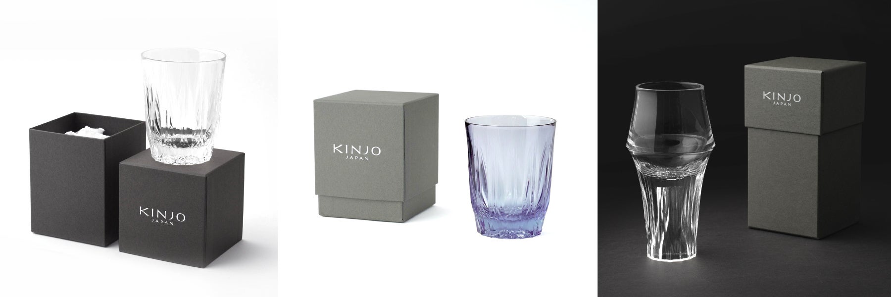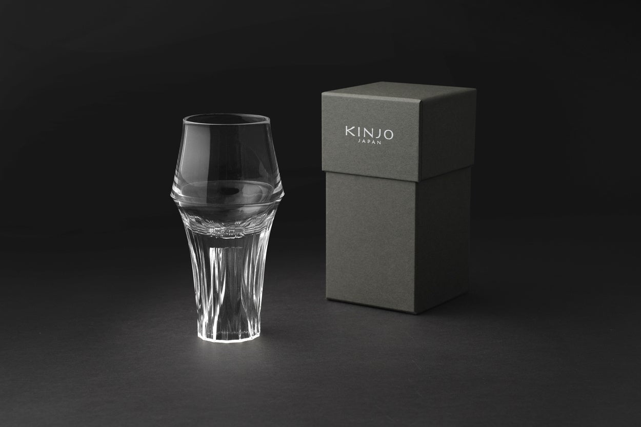 KINJO JAPANは家電製品のゴム部品製造において業界で高いシェアを誇る同社によって、初のオリジナルブランドとして2020年に誕生。ガラスと同等の透明度を持つシリコーンゴムを用いた、光を綺麗に取り込むシャープなカッティングデザインと、落としても割れない、耐熱性に優れた機能性が特徴である。また、販売当初より多数メディアで取り上げられ、大きな反響を呼んだ。