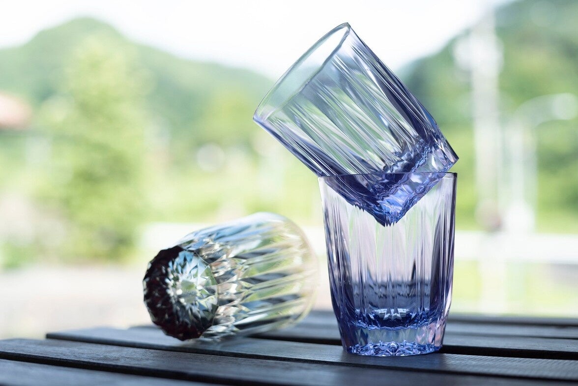 従来のゴム成形ではガラスのような透明度を表現することは難しいとされていたが、80年以上の歴史をもつ同社技術力と大阪府八尾市が誇る職人の手によって、10年の試行錯誤の末に製品化を実現。また、切子細工が施されたガラスのようなシリコーンゴム製のグラスは、軽い、持ちやすい、割れないという3つの特性を持ち、お子様からご高齢の方まで多くの方にとって使いやすいユニバーサルデザインとなっている。また近年では、コロナ禍でニーズが高まったアウトドア・屋外レジャーでの利用も増えている。