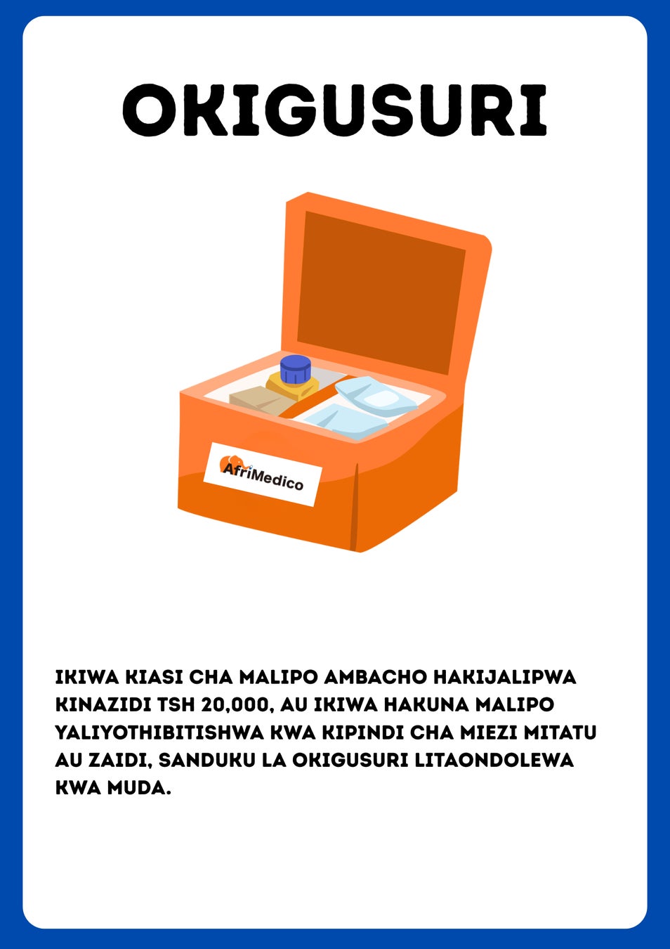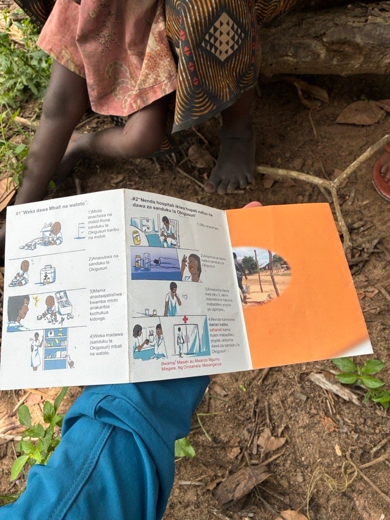 AfriMedicoは、置き薬の設置だけでなく、置き薬箱に薬剤の適切な使用方法やマラリア等の疾患が疑われた場合はすぐに医療機関を受診するよう書かれたリーフレットを入れたり、村で手洗いうがいの重要性やマラリアについての教育など疾患啓発を行ったりし、予防やセルフメディケーション、早期受診の大切さを呼び掛けています。