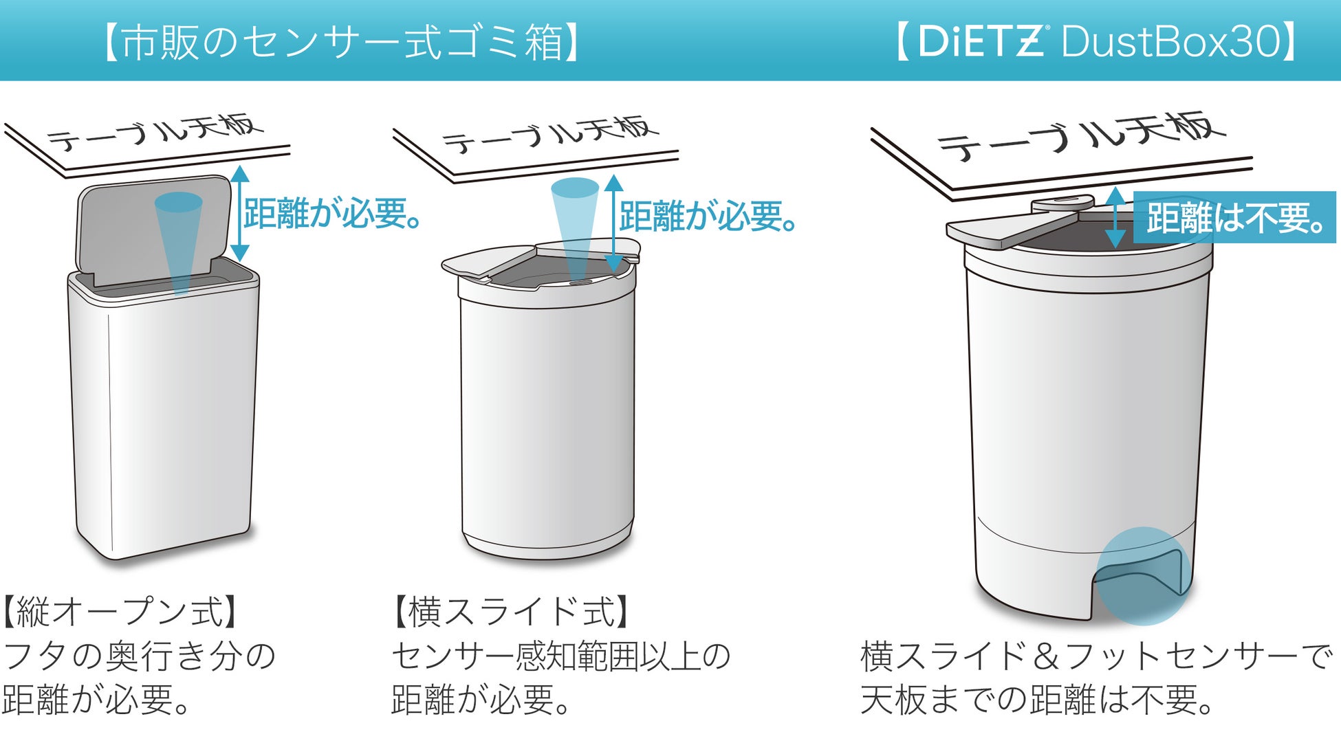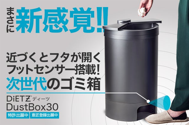 新感覚!ゴミ箱に近づくだけでフタが開く!独自開発【デュアルモーションフットセンサー】を搭載した次世代のゴミ箱。これからの時代は手ではなく足でセンサー感知! 【DiETZ(ディーツ)DustBox30】