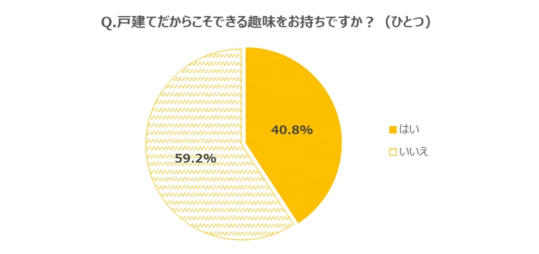 一方、持ち家の戸建てにお住まいの方を対象に、「戸建てに住んでいるからこそできる趣味があるか」を聞いたところ、4割が「はい」(40.8%)と回答。「戸建てだからこそできる」と考える理由については「音を気にしなくてよい」(サラウンドサウンドでの映画鑑賞、筋トレマシーンや有酸素運動の際の騒音など)という点と、「庭がある」(庭でBBQが楽しめる、テントを設営できる、ガーデニングが思う存分楽しめるなど)という点を挙げる人が多くみられました。