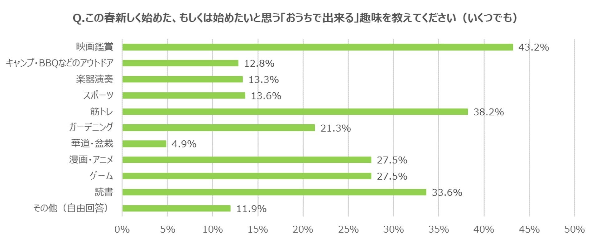 <コロナ禍の趣味に関する意識調査>3人に1人が「コロナ禍に自宅でできる趣味を始めた」と回答 この春新しく始めたい(始めた)「おうちで出来る趣味」のTOP3は映画鑑賞、筋トレ、読書という結果に!