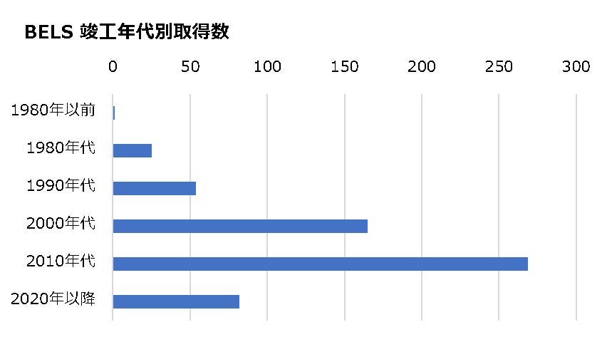 ・2000年より前の竣工であっても、環境性能評価・認証を取得している物件が多数あるという結果となりました。過去の物件であっても、今後申請することにより評価・認証を取得できる可能性があります。