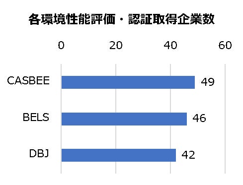 BELS、CASBEE 、DBJ Green Building認証について調査J-REIT 全58銘柄の環境性能評価・認証取得状況を公表~竣工年や延床面積、認証ランクに関わらず、積極的に取得の傾向~