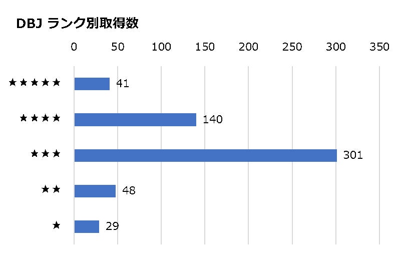 ・ランク別では★5が228件(全体の約38%)となっており、取り組み次第で最高ランクの取得ができているという結果となりました。