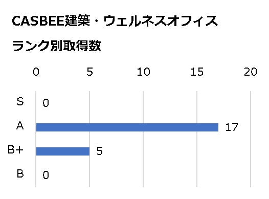 <CASBEE建築・ウェルネスオフィスランク別取得数>