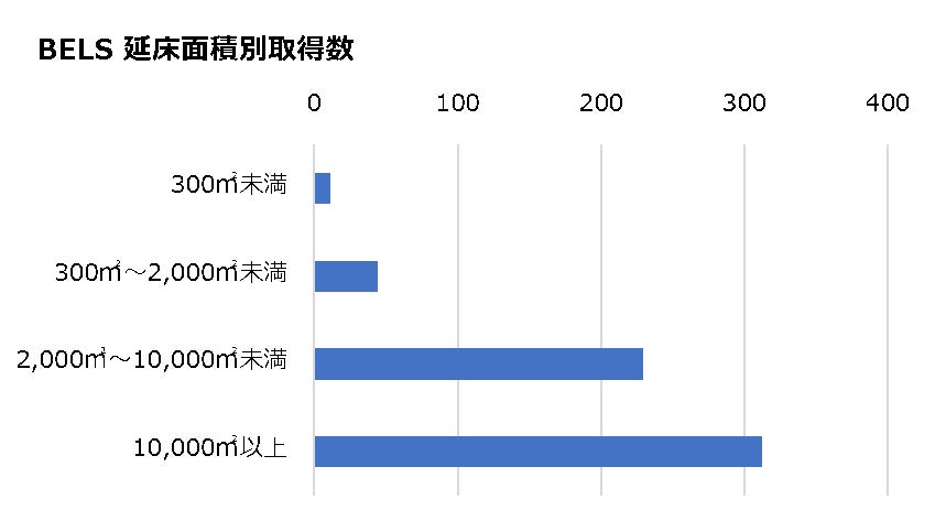 ・2000年以前に竣工した80件(全体の約14%)が認証を受けていることから、延床面積や竣工年代に関わらず取得を進めていることがわかりました。