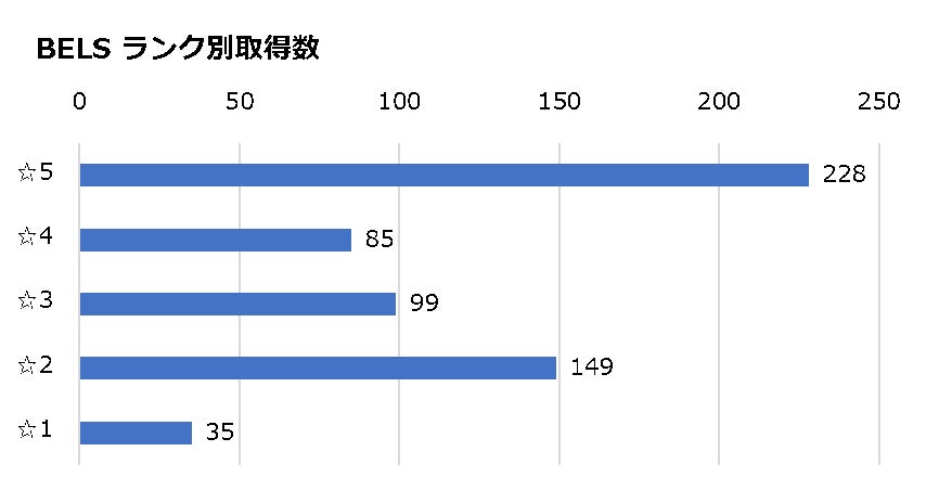 ・BELSはランク別で★5が228件となっており、取り組み次第で最高ランクの取得ができています。