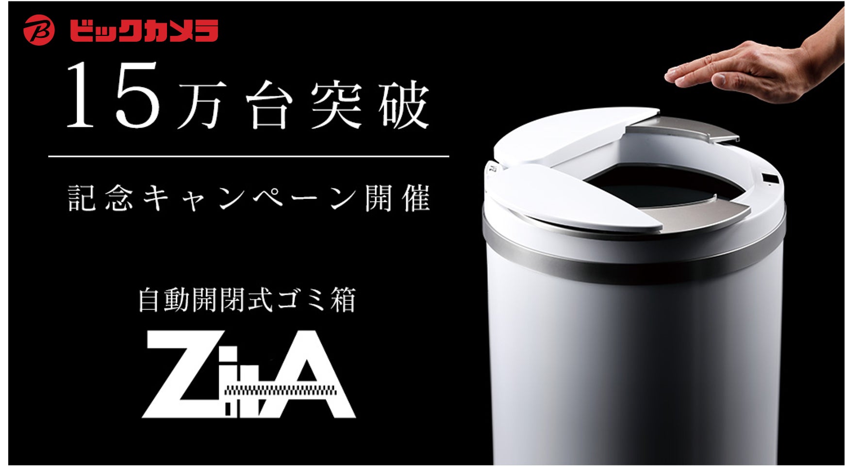 使う前には戻れないゴミ箱、累計15万台*突破記念!店頭でお買い上げいただいた方に専用キャスタープレゼント!『自動開閉式ゴミ箱ZitA 15万台突破記念!ビックカメラ限定キャンペーン』開催