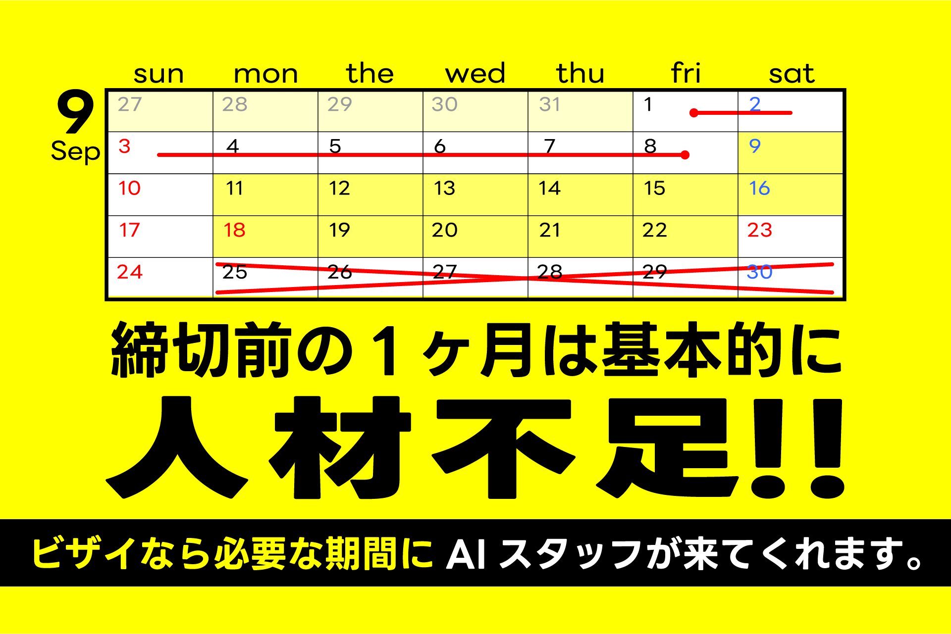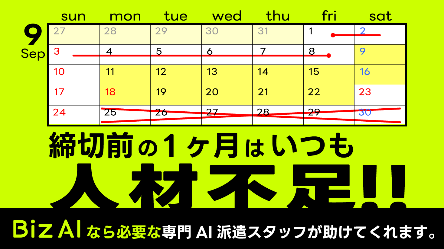 人材不足で悩む士業や専門企業へ、膨大な専門知識を把握した社員と同じくプレトレーニングしたAI派遣スタッフを社内に派遣し、人とAIの共同によって業務効率化や課題解決を加速するビジネスエキスパートAIサービス「BizAI/ビズエーアイ」。