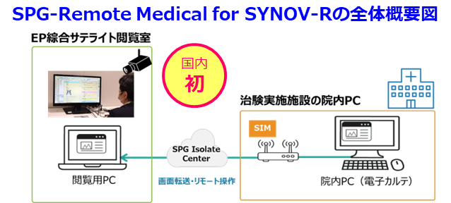 SPG-Remote Medical for SYNOV-Rは治験実施医療機関で電子カルテや医療情報を閲覧する環境と全く同じ環境を、遠隔地の専用閲覧室で再現します。