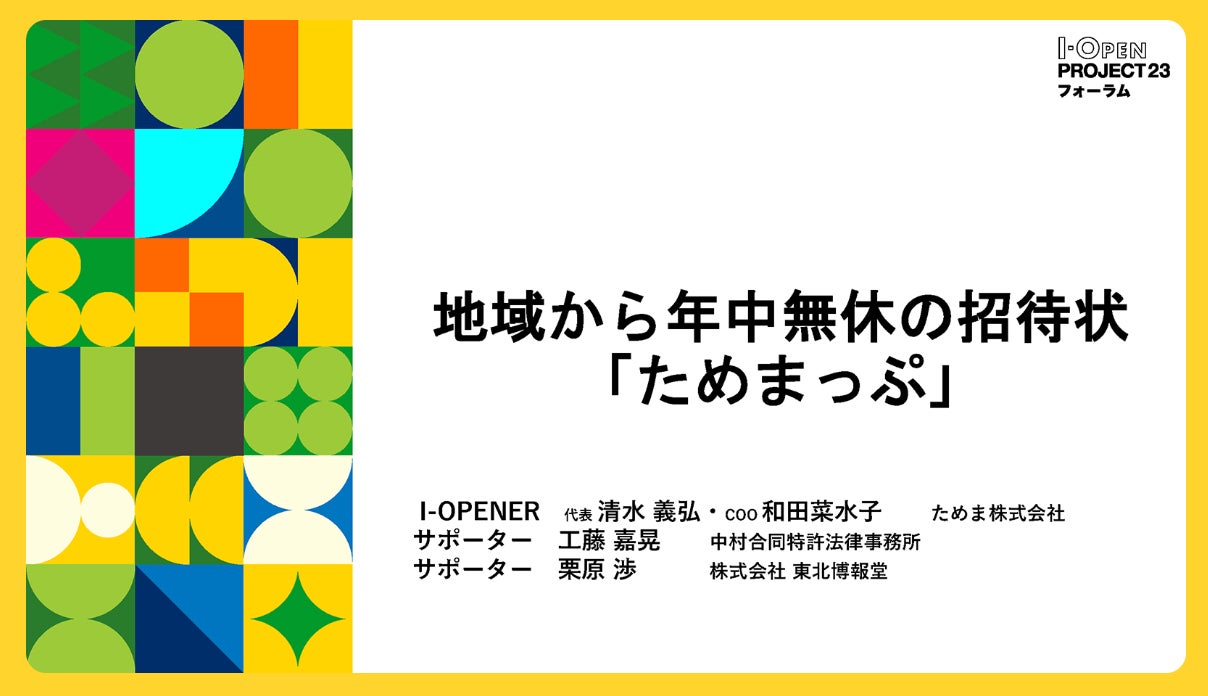 ためま株式会社と特許庁の繋がりは、2023年度に参加した特許庁の知財活用プログラム「I-OPEN PROJECT」でした。