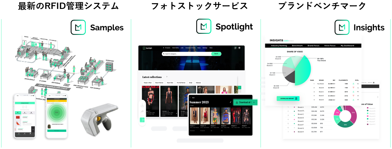 この度、「ファッション DX EXPO」に出展するサービスは、LAUNCHMETRICSの日本国内における主力製品であるSamples(サンプル管理)とRFIDを連携した最新ソリューション、世界4,000以上のブランドのパフォーマンスをベンチマーク可能なInsights(インサイト)の他、世界中のファッションショーを最速・最高品質でチェックできるSpotlight(フォトストックサービス)を展示致します。当日は、実際に製品・サービスをご体験いただくことが可能です。