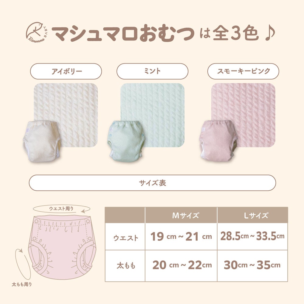 <可愛い・履かせやすい・洗濯しやすい>新感覚の布おむつ。「マシュマロおむつ」2月1日(木)発売!