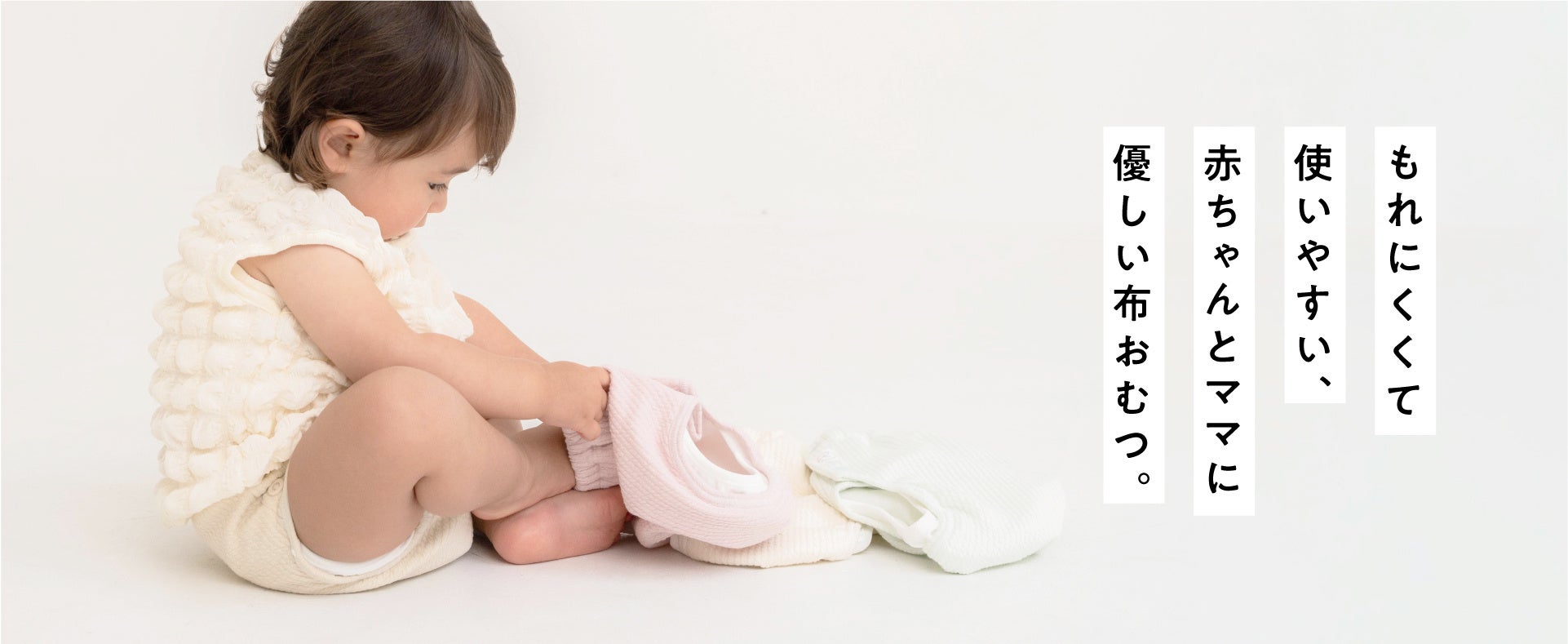 布おむつには、赤ちゃんとのコミュニケーションを増やし、スムーズなおむつはずれを促すなど、たくさんのメリットがあります。そんな布おむつを取り入れた育児の手間や負担を減らし、より楽しく、より快適に赤ちゃんのお世話ができるよう考え設計した『マシュマロおむつ』。布おむつを使うのが初めてという方にも、使った事があるという方にも、お世話のしやすさを感じていただける製品です。