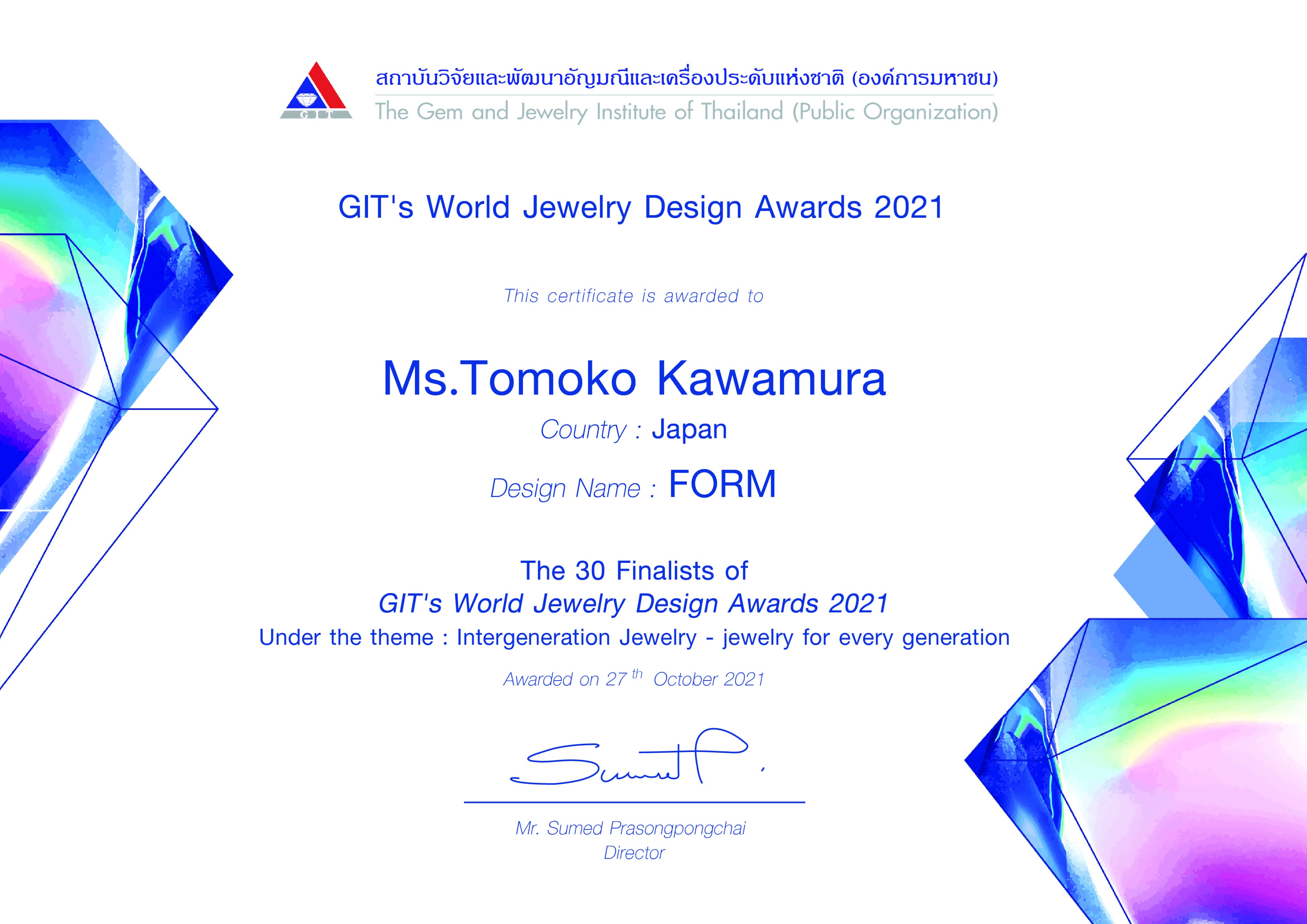「GIT’s World Jewelry Design Awards 2021」において、日本人で唯一の受賞。