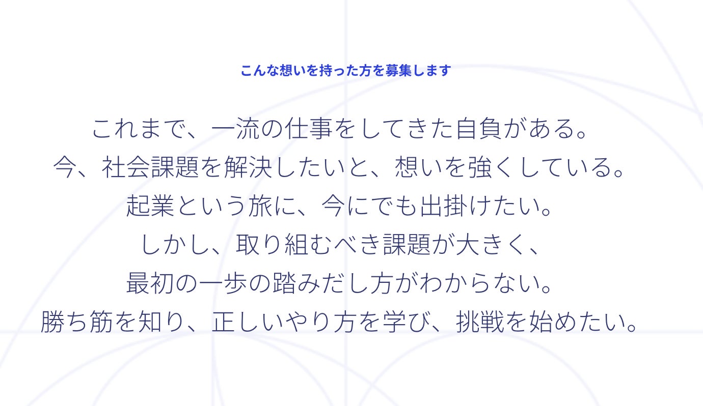 募集|世界を、揺さぶるような情熱と高い志のある起業家を募集
