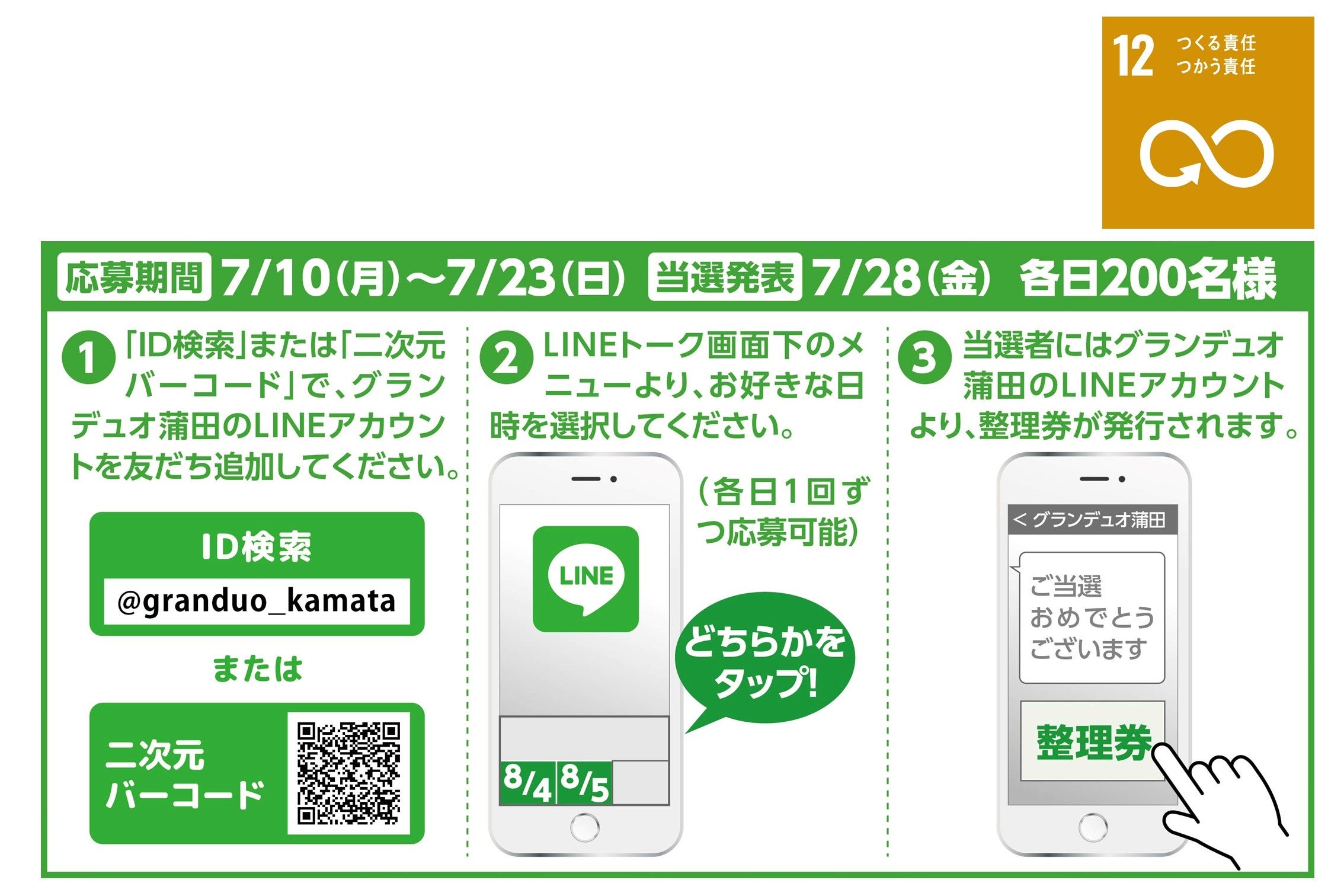 □当選発表:ご当選された方にはグランデュオ蒲田インスタグラム公式アカウントのダイレクトメッセージよりご連絡いたします。(8月下旬予定)