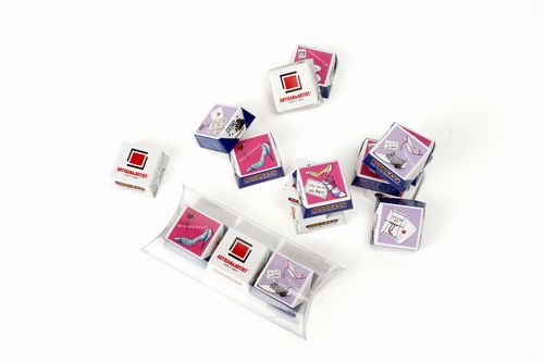 1. 一部実店舗対象 期間中、下記店舗にて「Take Me to the Party」化粧ポーチをご購入いただいた方、または店頭に飾られているフェイクスイーツで作られた「ガラスの靴」を指定ハッシュタグをつけてSNSに投稿していただいた方、各店舗先着80名様に、オリジナルデザイン柄のチョコレートをプレゼントいたします。