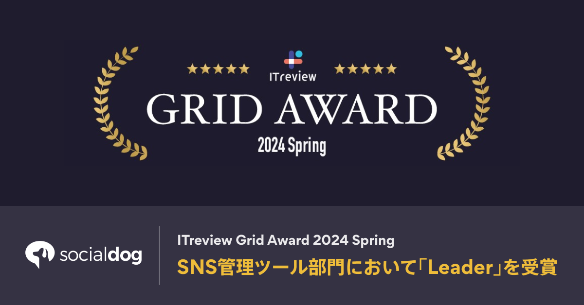 SNSアカウント管理ツール「SocialDog」、「ITreview Grid Award 2024 Spring」のSNS管理ツール部門において「Leader」を受賞
