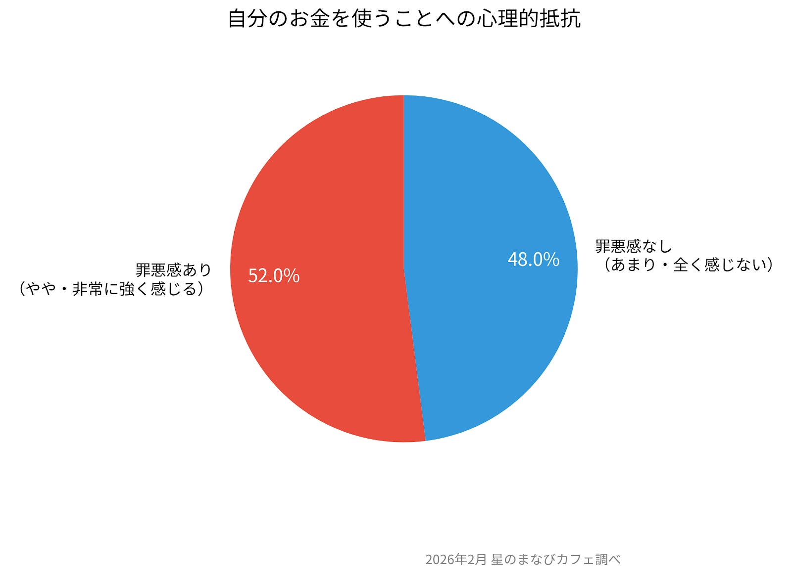 自分のお金を使うことに対し、過半数の52%が「申し訳なさ(罪悪感)」を感じると回答しました。