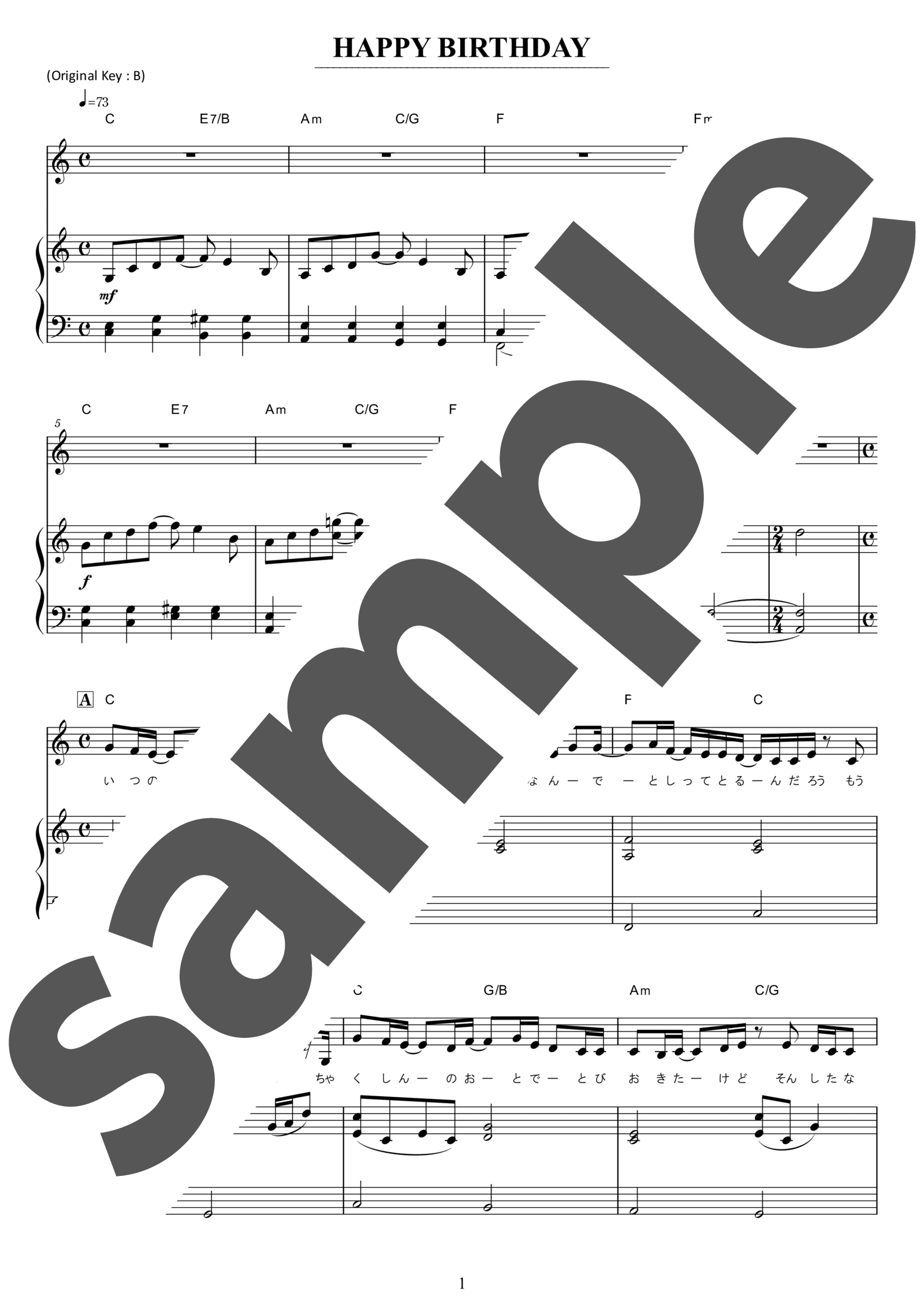 HAPPY BIRTHDAY(弾き語り)の楽譜については、難易度の異なる中級、初級者向け2種類の楽譜をご用意しました。