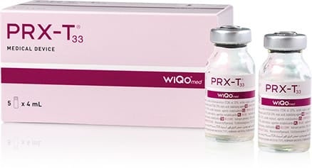 コラーゲンピールは、高濃度トリクロロ酢酸(TCA)と低濃度過酸化水素(H2O2)とコウジ酸から成る薬剤「PRX-T33」をお肌奥深くの真皮層に届けることで、コラーゲンの増生を促します。