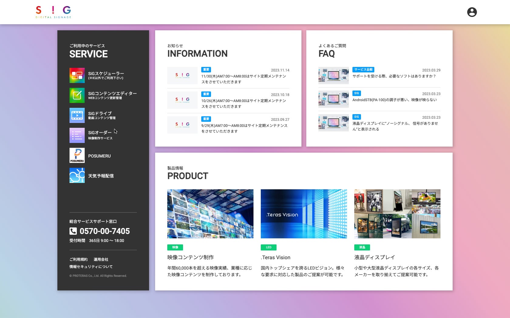 デジタルサイネージ運用を簡単に行うことができるサービス「SiG」をリリースしました【プロテラス】