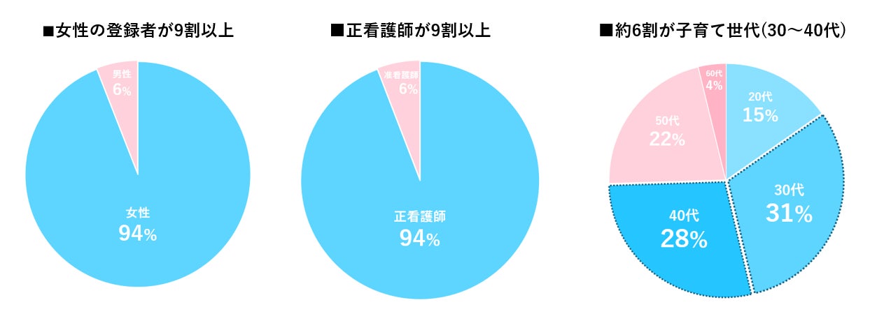 Bee-Nsには、Wワーク希望や子育て中の看護師を中心に登録が進んでおり、柔軟な勤務スタイルを求める看護人材に支持されています。