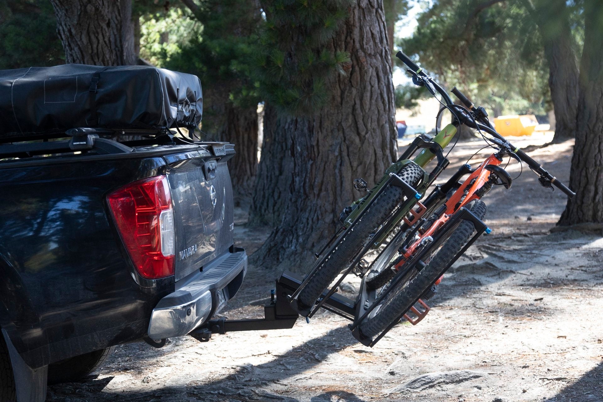 背の高いSUVの普及に伴い、ルーフマウントタイプのサイクルキャリアへの積み込みが困難になってきたのは世界共通。また、やや重量のある電動アシスト機能付きのスポーツEバイクの普及も進み、注目されてきたのがヒッチマウントタイプのサイクルキャリア。