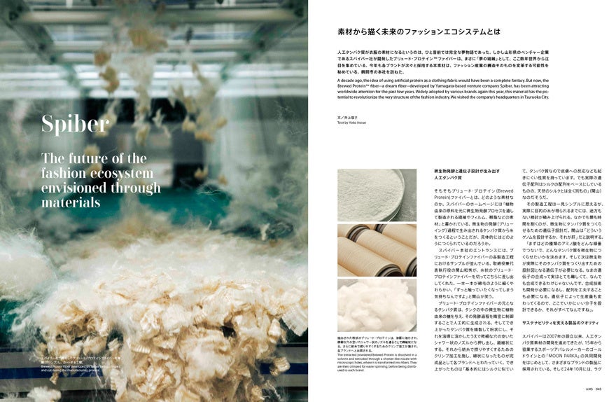 人工タンパク質が衣服の素材になるというのは、ひと昔前では完全な夢物語であった。しかし山形県のベンチャー企業であるスパイバー社が開発したブリュード・プロテイン™ファイバーは、まさに「夢の繊維」として、ここ数年世界から注目を集めている。今年も各ブランドが次々と採用する本素材は、ファッション産業の構造そのものを変革する可能性を秘めている。鶴岡市の本社を訪ねた。