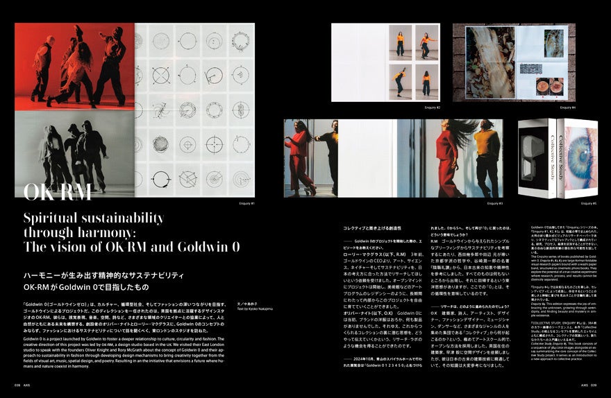 「Goldwin 0(ゴールドウインゼロ)」は、カルチャー、循環型社会、そしてファッションの深いつながりを目指す、ゴールドウインによるプロジェクトだ。このディレクションを一任されたのは、英国を拠点に活躍するデザインスタジオのOK-RM。彼らは、視覚表現、音楽、空間、詩など、さまざまな領域のクリエイターとの協業によって、人と自然がともにある未来を構想する。創設者のオリバー・ナイトとローリー・マクグラスに、Goldwin 0のコンセプトのみならず、ファッションにおけるサステナビリティについて話を聞くべく、東ロンドンのスタジオを訪ねた。