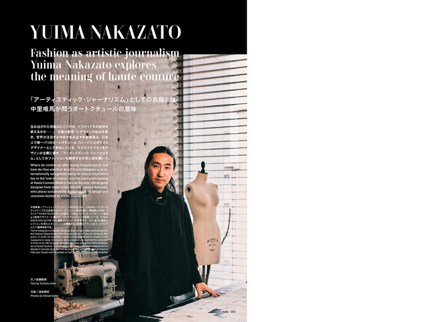 生み出された衣服はどこへ行き、どうやってその役目を終えるのかー 。" 衣服の終焉" にデザインの起点を置き、世界が注目する作品を生み出す中里唯馬は、日本人で唯一パリのオートクチュール・ウィークに公式ゲストデザイナーとして参加している。サステナビリティをデザインの主眼に置き、「アーティスティック・ジャーナリズム」としてのファッションを構想する中里に話を聞いた。