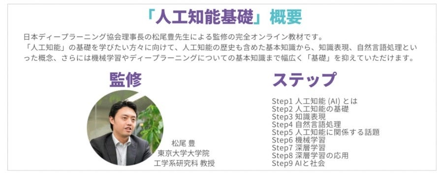 zero to oneは、完全オンライン教材である「人工知能基礎」(監修:東京大学松尾豊教授)、「G検定実践トレーニング」等を通して、これまでにのべ100社以上、累計4,000人以上の方々に「G検定」向け、もしくは「G検定」の出題範囲に応じた教育コンテンツの提供を行なってまいりました。また、2021年2月より開始した「行政職員向け無償提供プログラム」を通して、既に100以上の官公庁、地方自治体職員の方々に人工知能の基礎教材を受講をいただいています。