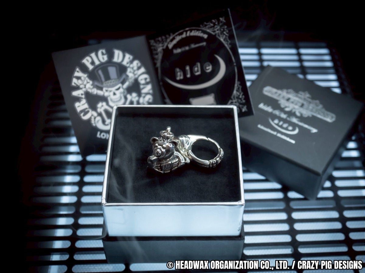 創業者であり現在も唯一人のデザイナーを務めるアーマンド・セラが、ロックミュージックや欧州の芸術から得たインスピレーションを、卓越した彫⾦技術によって⼤胆かつ繊細、ハードでありながら遊び⼼溢れるデザインに昇華させ続けるジュエリーブランド。1992年の創業以来、hideがプライベートで愛用したほか、世界中のロックスターや映画関係者、著名⼈から支持を受けている。その象徴として、セラによるスカルリングは「現代の死を象徴する装身具」として大英博物館に収蔵され、ブランドの芸術性を世界に示した。2017年11月、初の海外旗艦店「CRAZY PIG DESIGNS TOKYO(東京・下北沢)」をオープンし、さらなる進化を続けている。