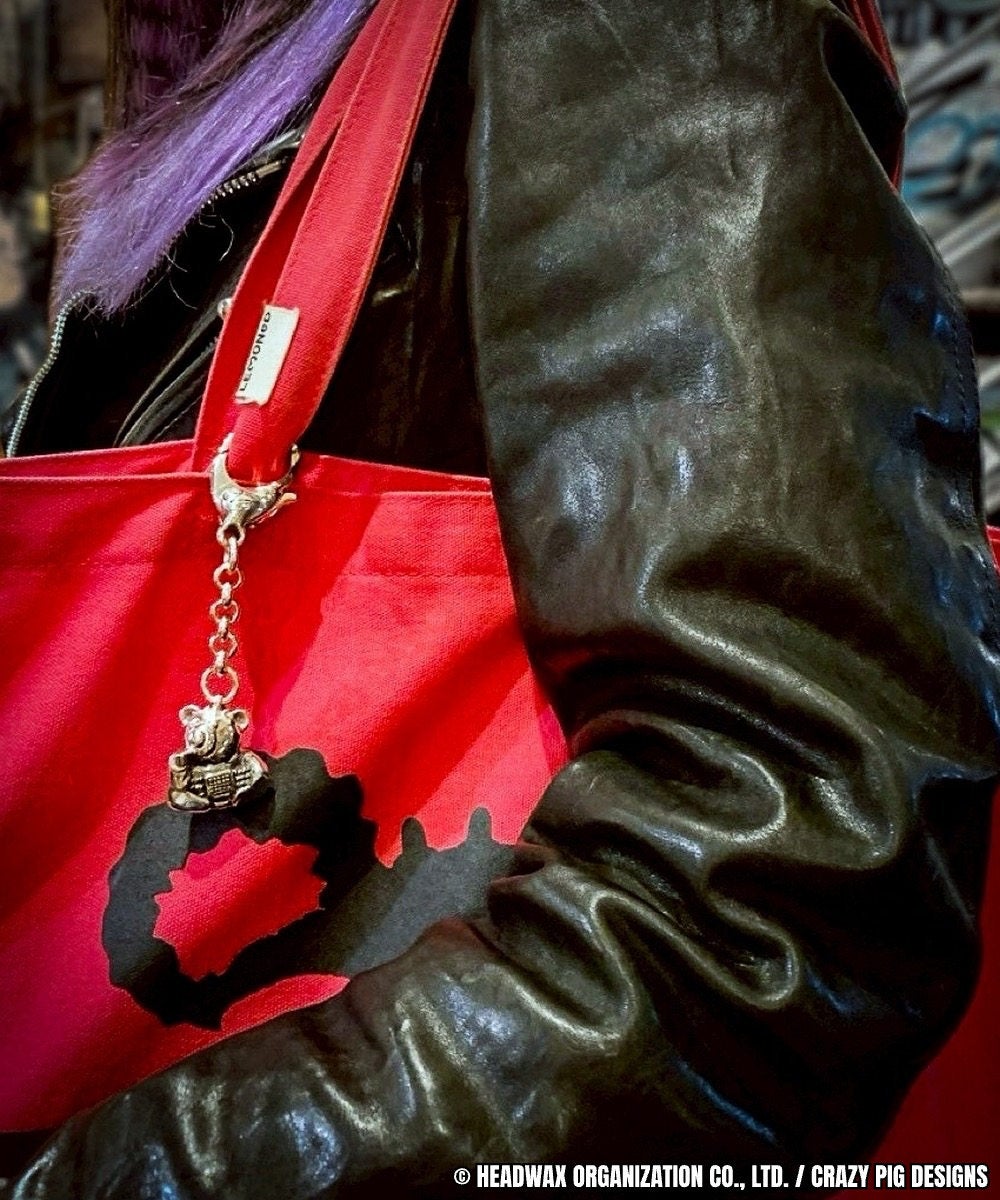 カラビナは、サイコベアをより日常に身近に感じられる解決策として新たにデザインされました。hideが愛用したCRAZY PIG DESIGNSの代表作『ボーンハンドリング』のオマージュとして骨の手の装飾が施され、hideとCRAZY PIG DESIGNSとの絆を象徴します。