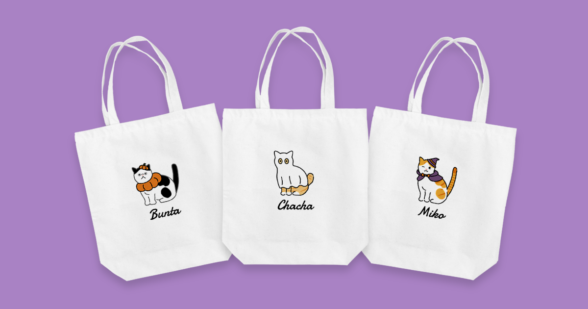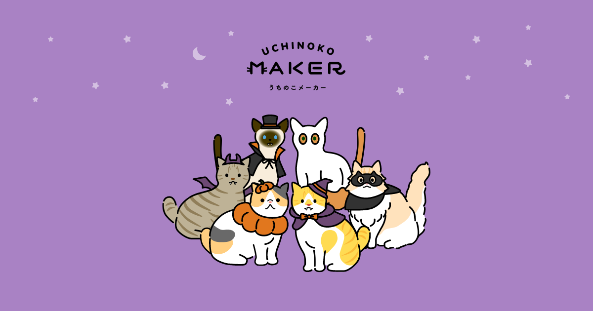 #うちのこメーカーハロウィンをつけて、ハロウィンパーツで仮装したあなたの愛猫のイラストをTwitterに投稿してください。投稿された方の中から抽選で3名様にあなたの「うちのこ」イラストが入ったオリジナルトートバッグを3名様にプレゼント♪