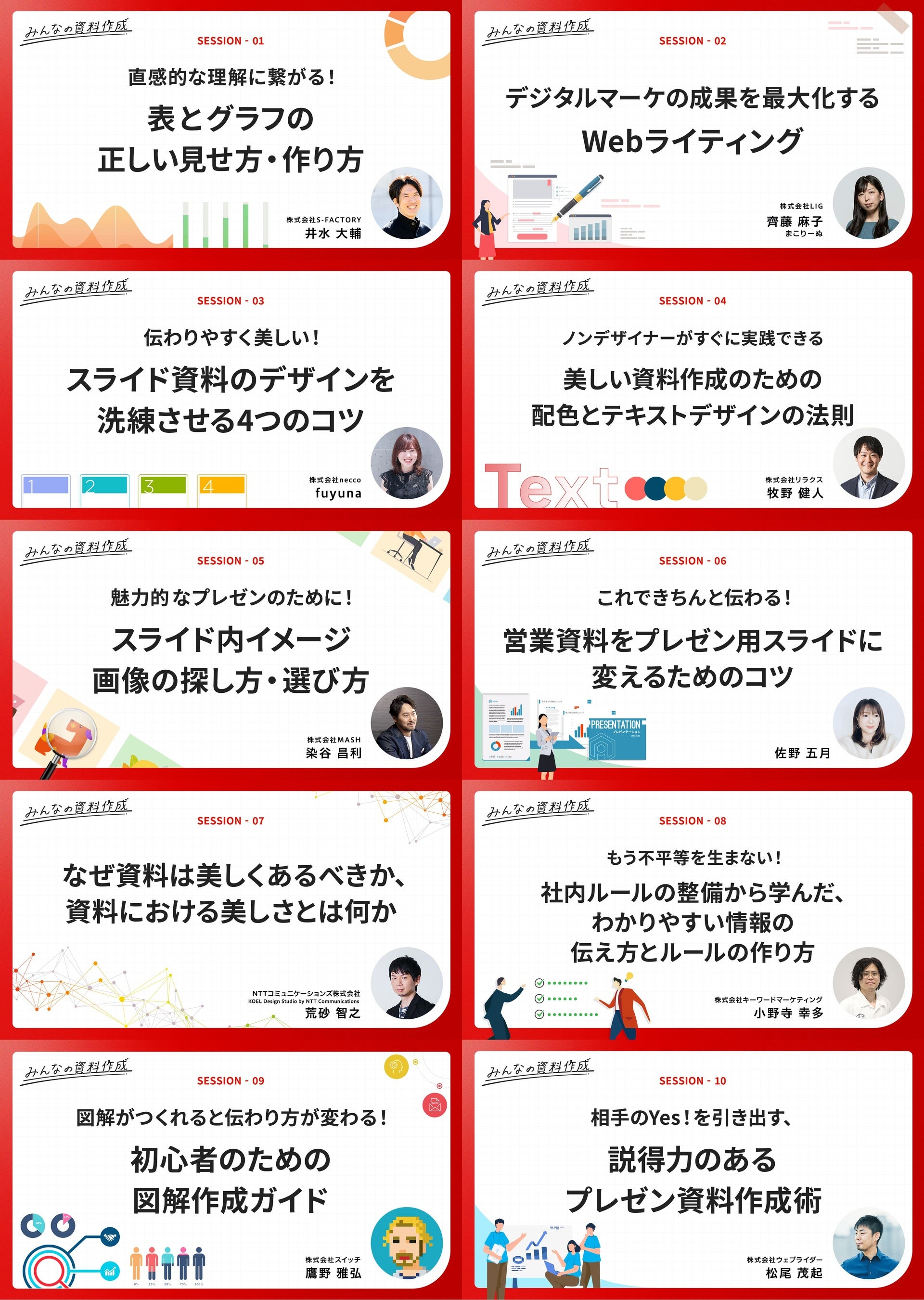 本イベントでは「みんなの資料作成」プロジェクトにも寄稿した10人の登壇者が出演します。