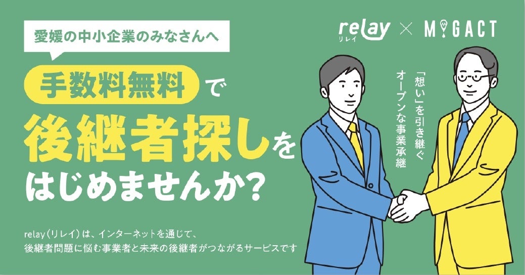 「事業承継マッチングプラットフォーム relay(リレイ)」とコダテルが業務提携。愛媛県内でオープンネームの事業承継を推進。