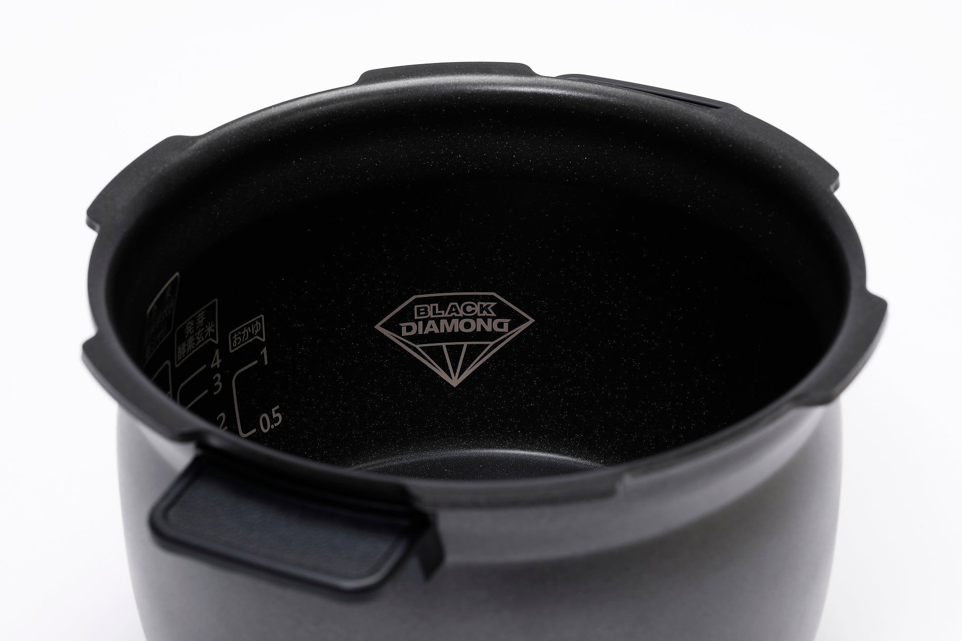 ブラックダイヤモンドは熱伝導率が高い炭素と鉄鉱石が含まれており、米の芯までしっかりと熱を伝えることができます。そのため、ふっくらとした旨味のあるおいしいごはんを炊き上げます。さらに、ブラックダイヤモンドは耐久性が高いことが特徴です。食品の安全性確保のための食品衛生法の検査に合格した商品です。