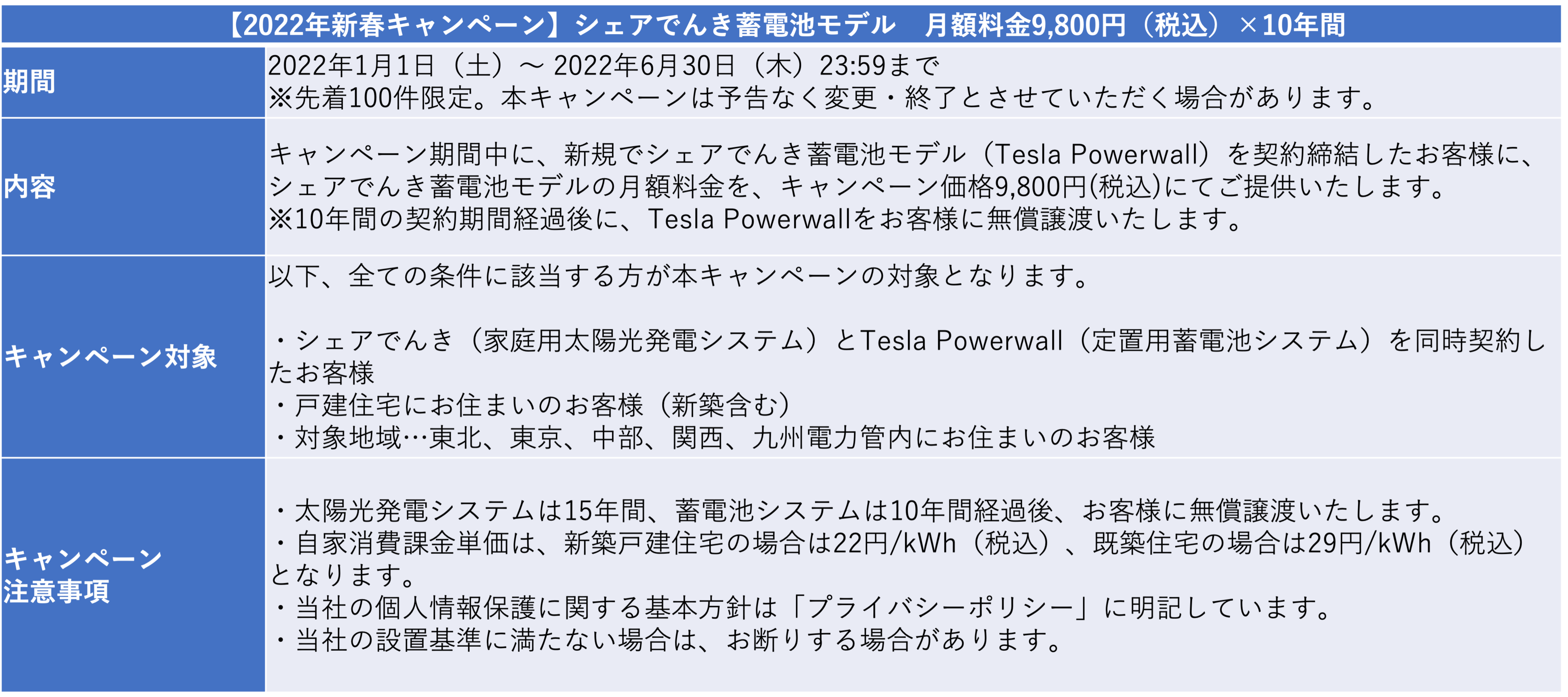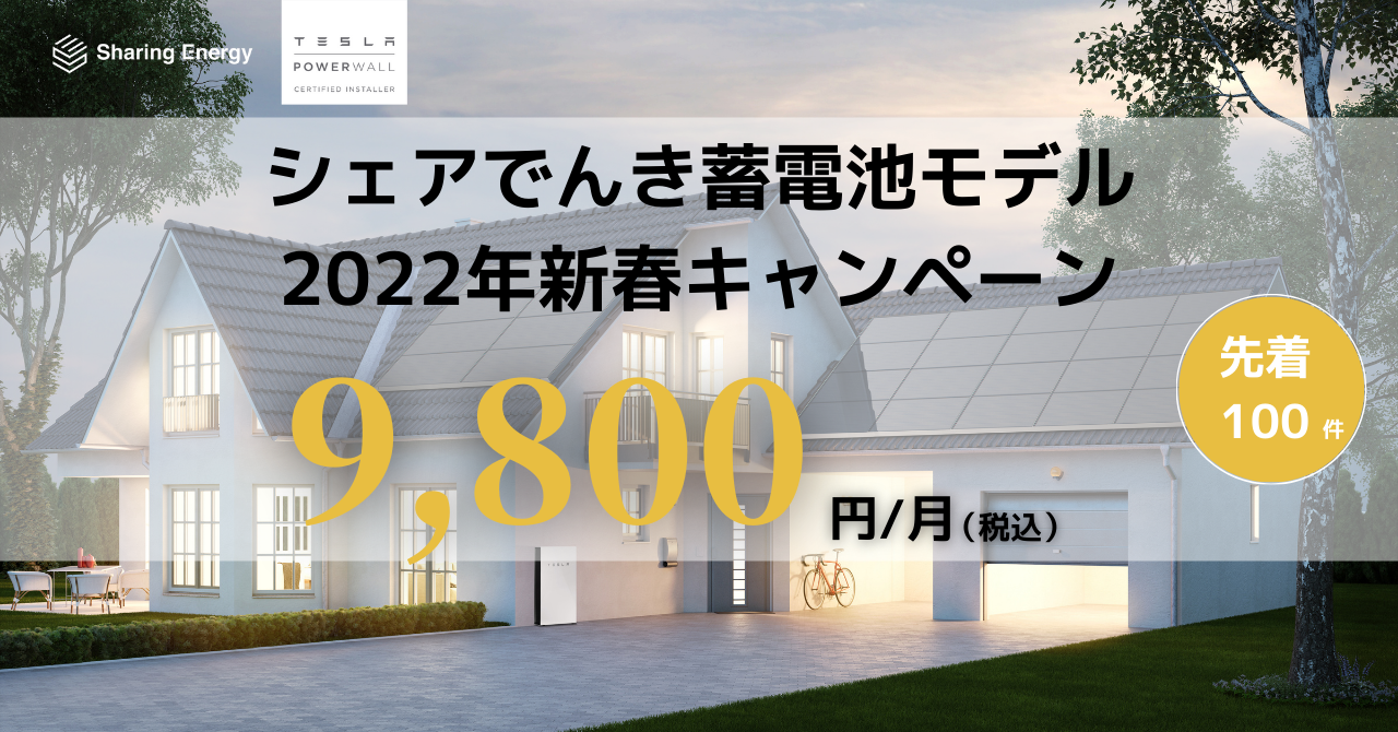 シェアでんき蓄電池モデル 2022年新春キャンペーンのお知らせ【先着100名様】
