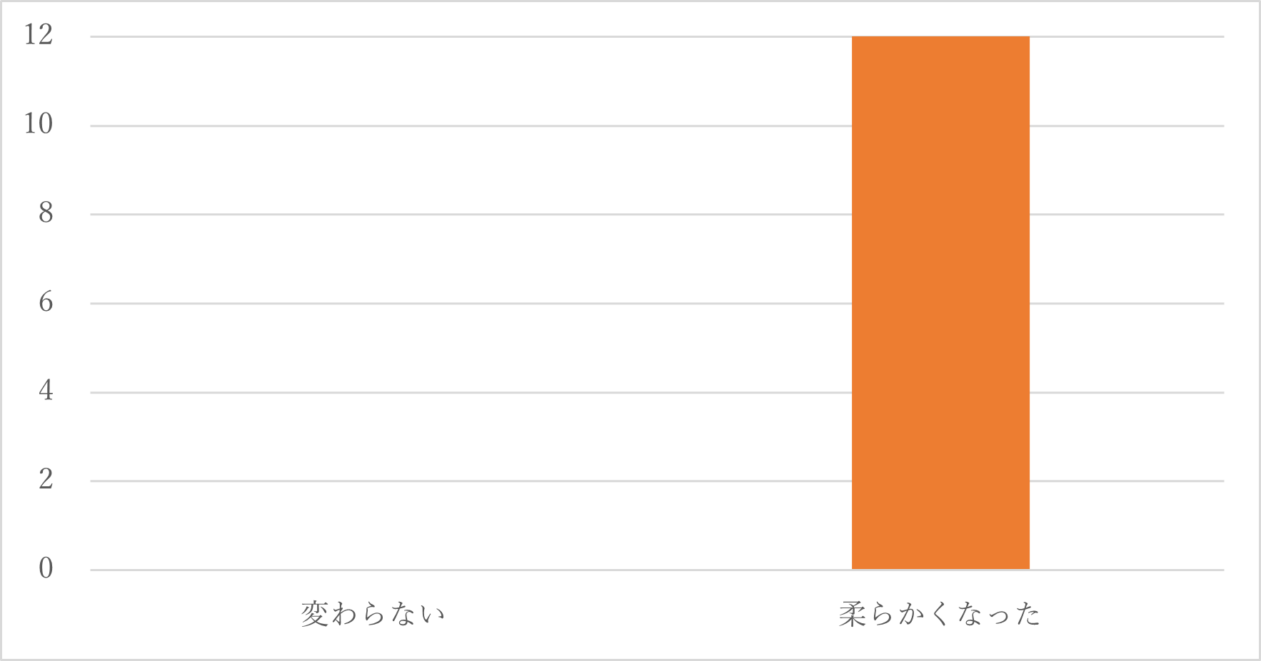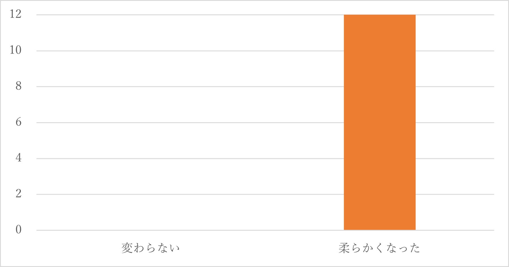 12名全員が着用前と比較し前屈が向上しました。(平均約5㎝)