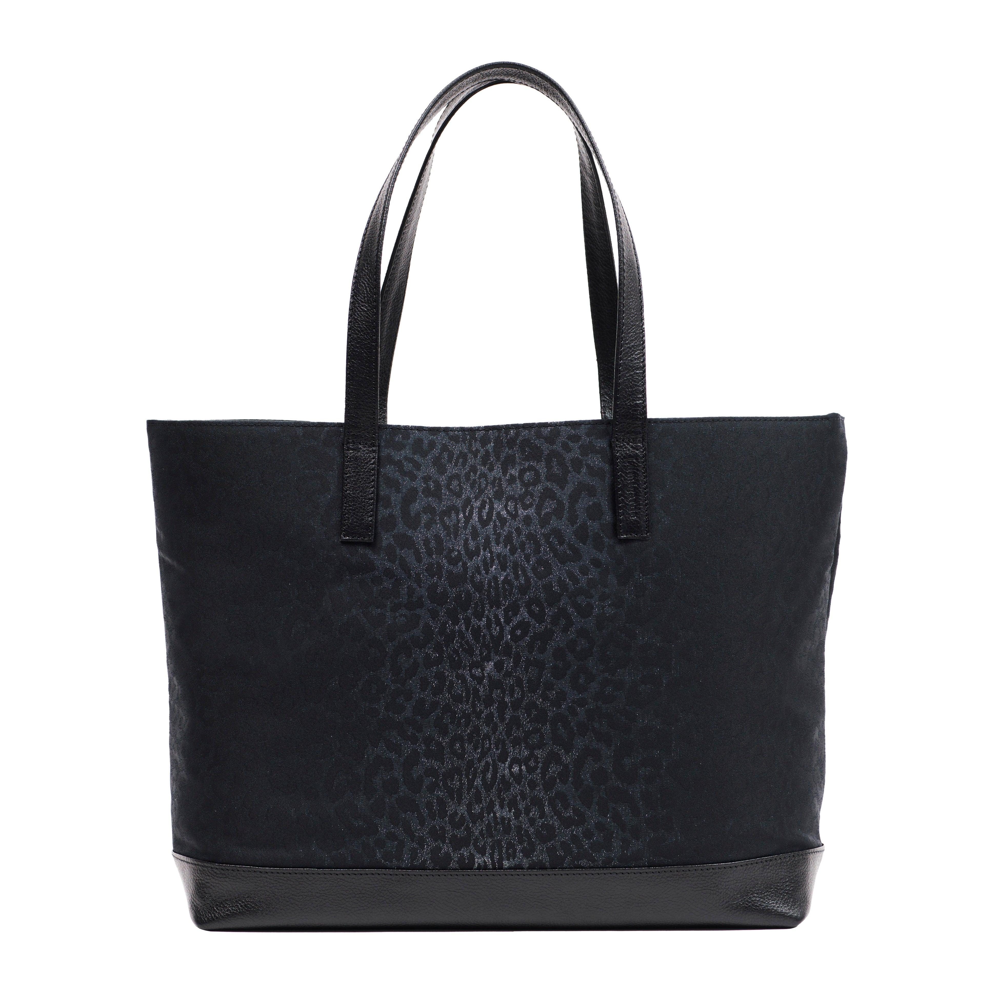 落ち着いた濃紺のベースカラーとトーンオントーンで表現したレオパード柄が大人な印象