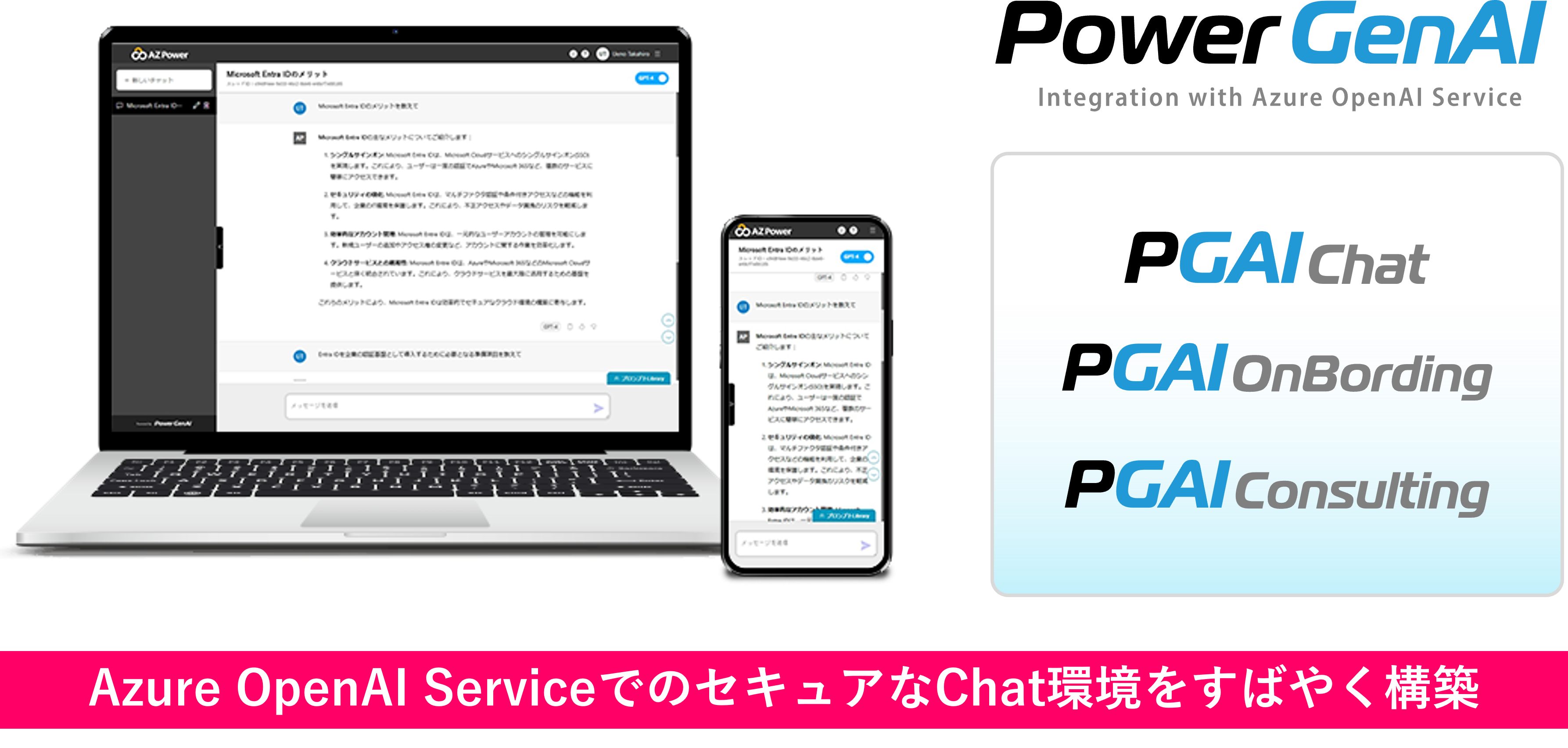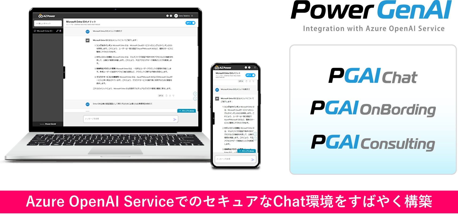 AZPowerではこれまで、業界に先駆けて「自社専用のChatGPT」「情報が外部に漏れないセキュアなChatGPT」をコンセプトとした企業専用ChatGPTインテグレーションサービス「PowerGenAI」を展開して参りました。