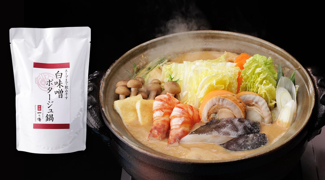 株式会社 京都一の傳(京都市/代表取締役:秦 健二)では、「スープまで飲み干す 白味噌ポタージュ鍋」を2022年10月29日(土)に発売しました。