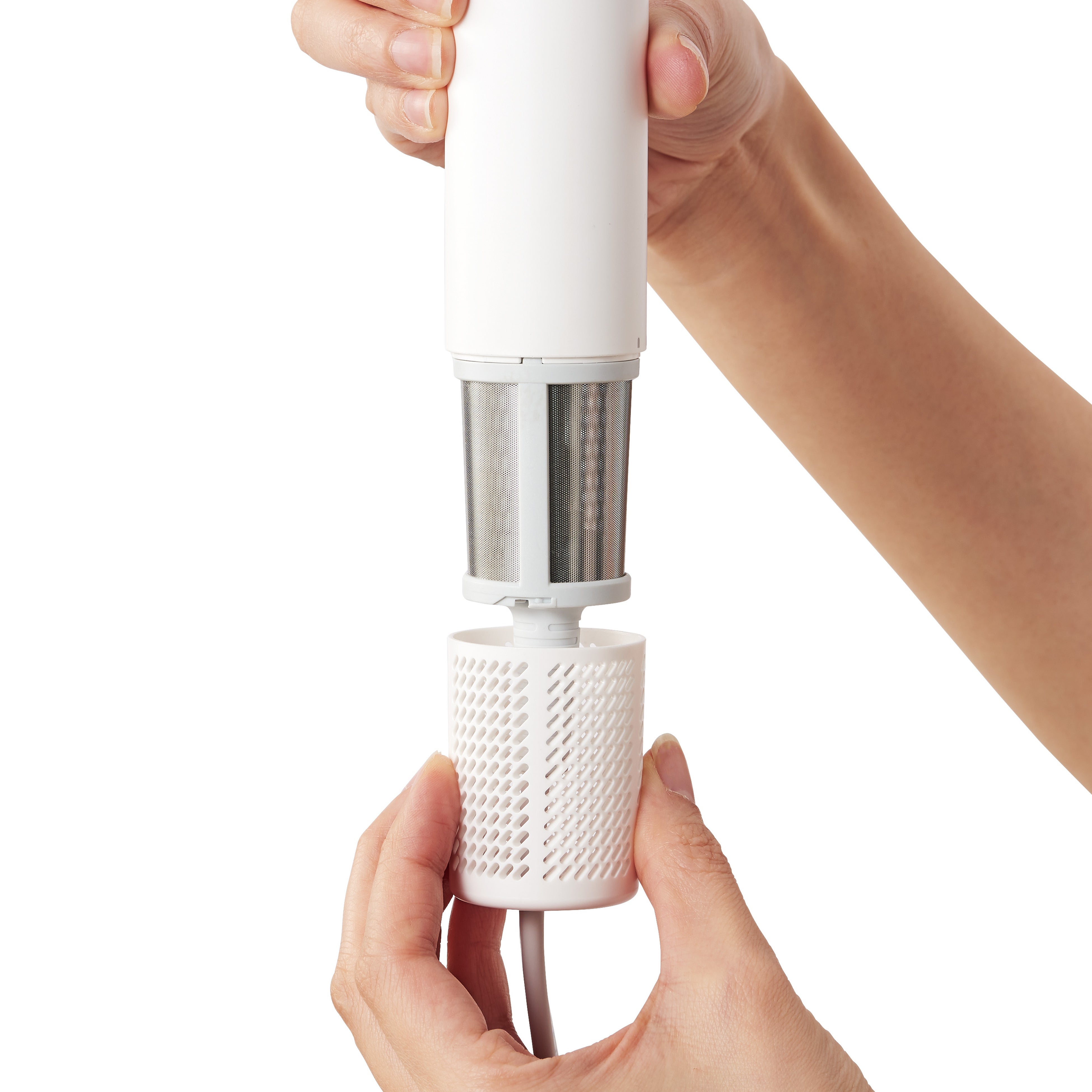 ノズルが短く、無駄を省いたシンプルで美しいI字型デザイン。モーターをグリップに内蔵したことで重心バランスに優れ、ドライする際の手首の負荷を軽減します。本体質量はわずか320g(※1)と軽量で、大人も子供も快適にお使いいただけます。