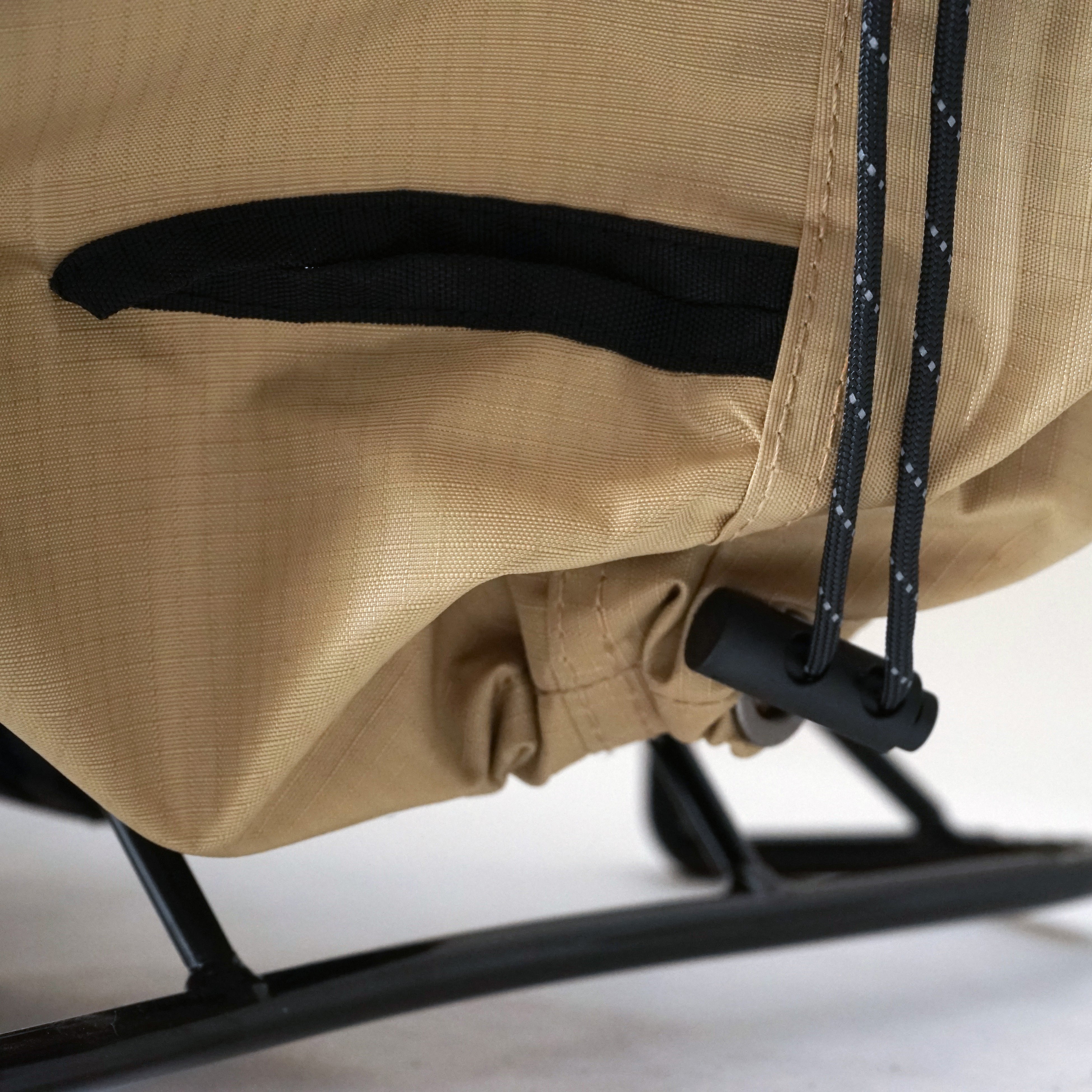 従来の製品で多く寄せられていた「カバーの裾が地面につく」という声に応え、裾が地面につきにくいデザインに改善しました。これにより、カバーが汚れにくく、耐久性も向上しています。