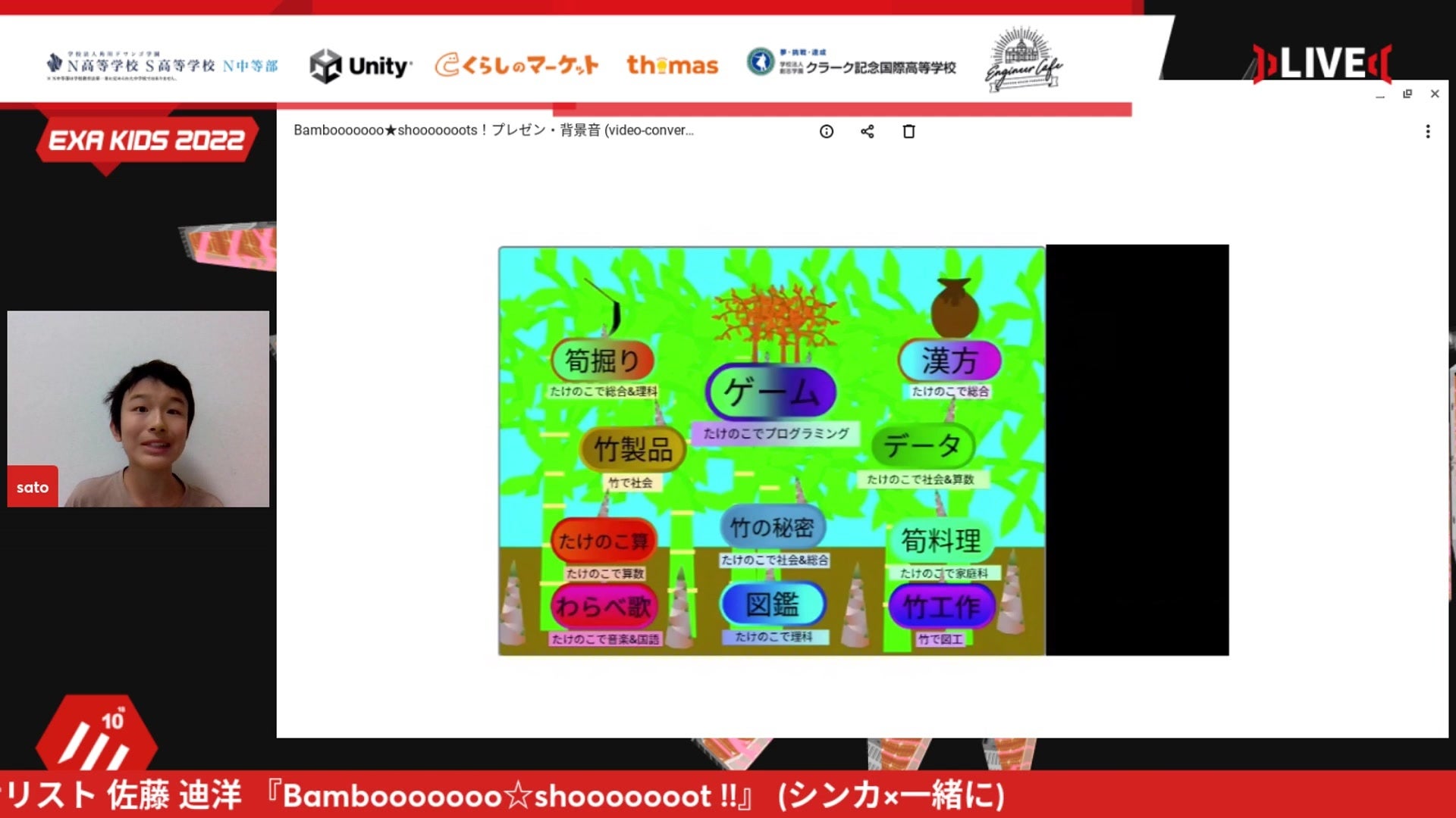 今年は3回目のオンラインでの開催となりました。海外からのエントリーを含む過去最多の81作品が集まり、一次審査オーディションを勝ち抜いた24組は、EXA KIDS 2022本番にて最終プレゼンテーションを行いました。