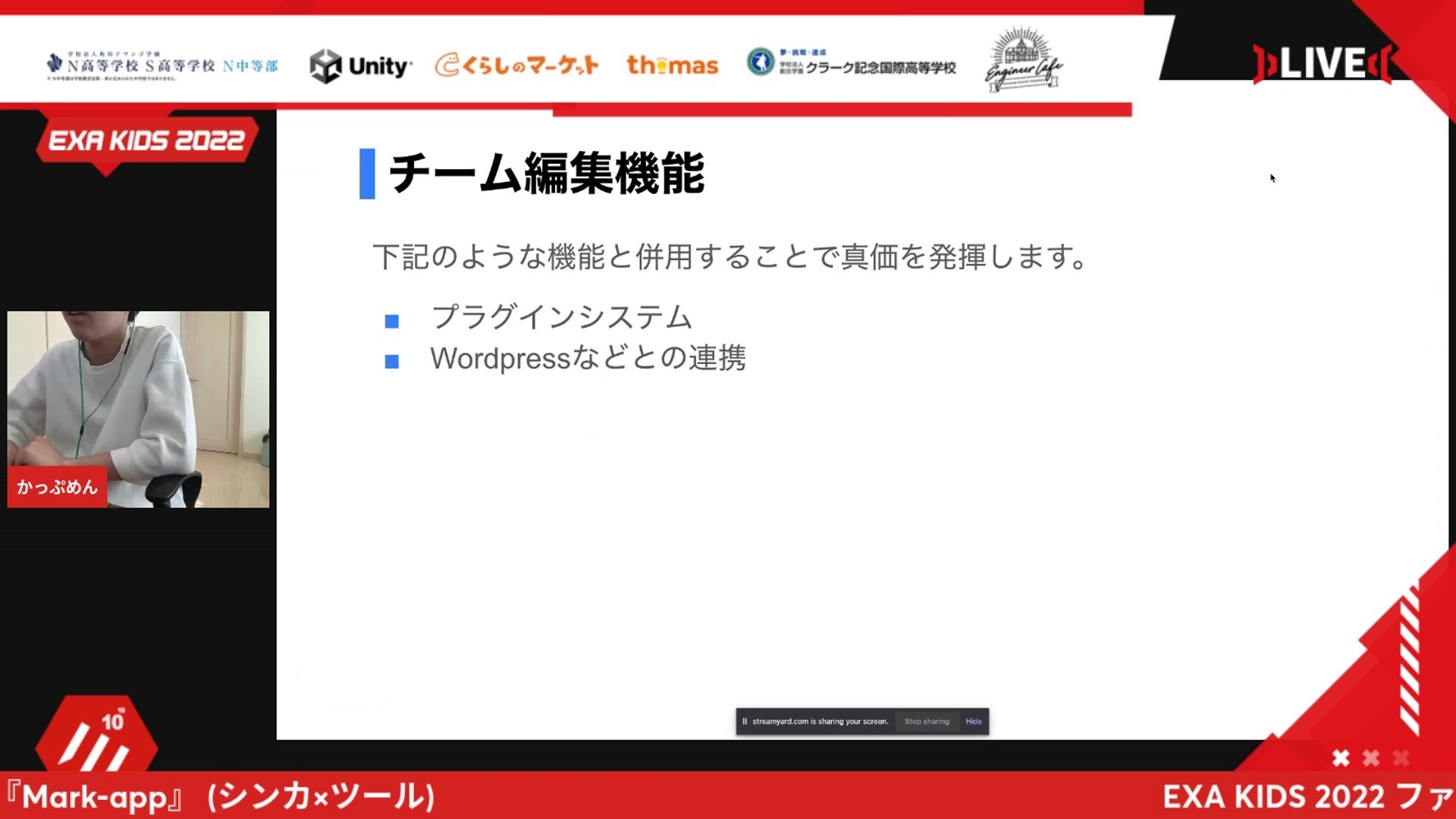 EXA KIDS 2022が終了。24組のファイナリストの中からチャレンジコース最優秀賞には中沢柊葉『Release』、エキスパートコース最優秀賞にはかっぷめん『Mark-app』が選ばれました。